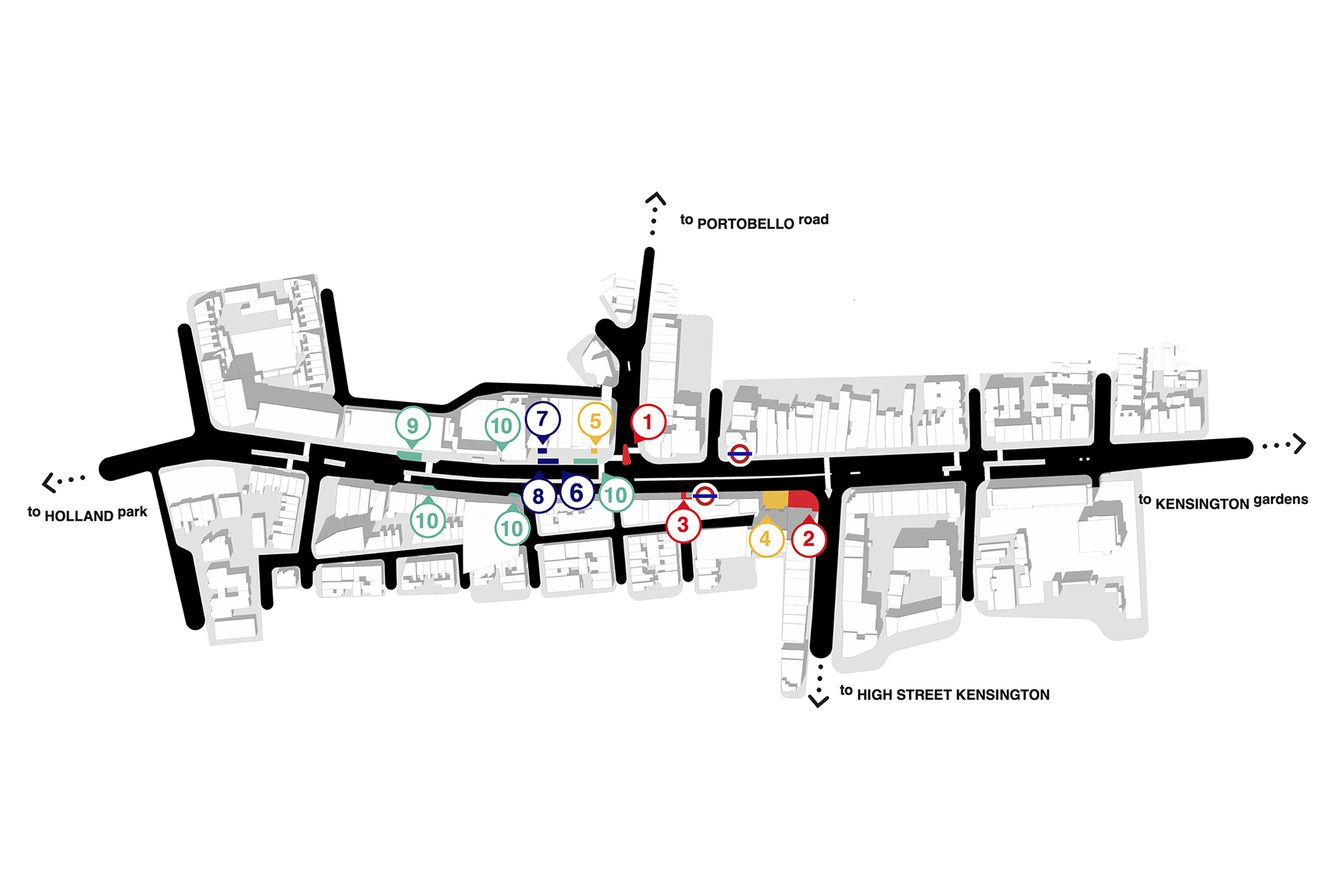 The proposal responds to Royal Borough of Kensington and Chelsea’s invite to Rediscover Notting Hill Gate, and to contribute to the long-term improvements of the area. The site has a history of activism through gathering to protest, which later transformed into gatherings for music and performance, expressed through Notting Hill Carnival and as a way of claiming this part of the city. The four lane road is re-imagined as a welcoming community corridor, a street for people to pause and mingle.