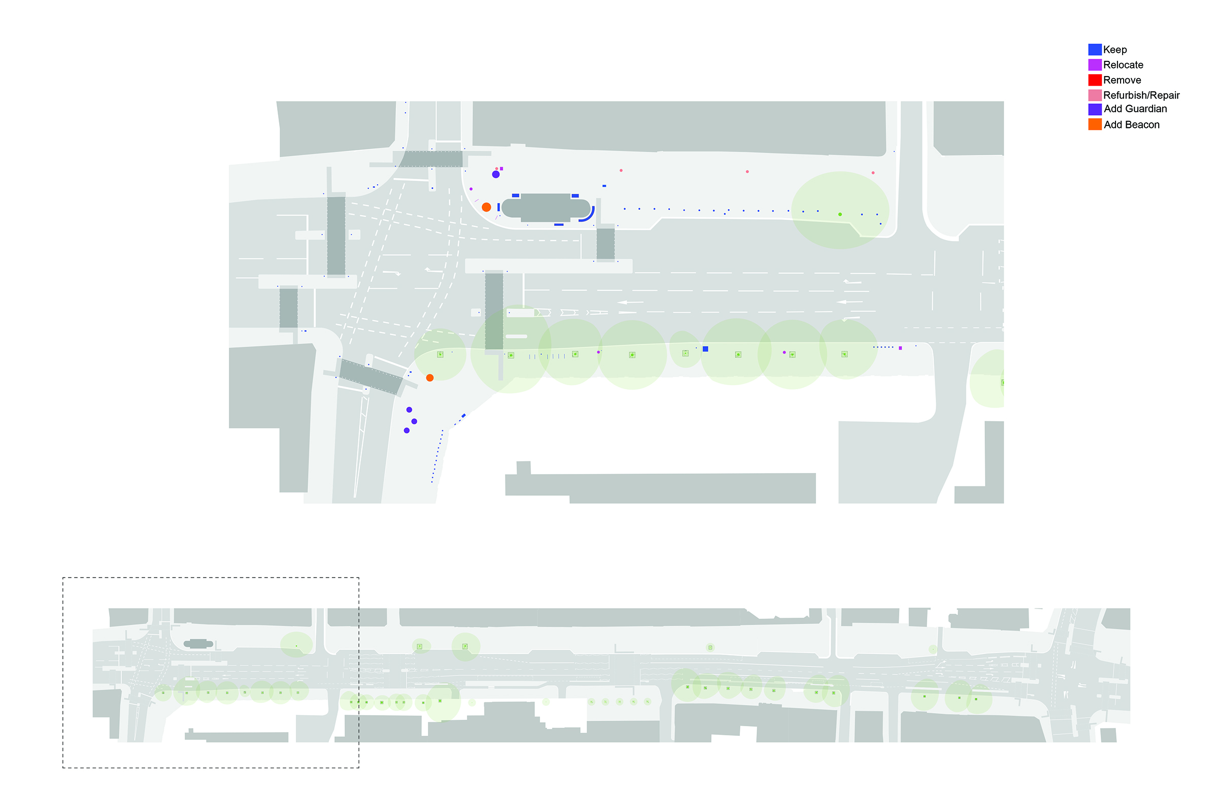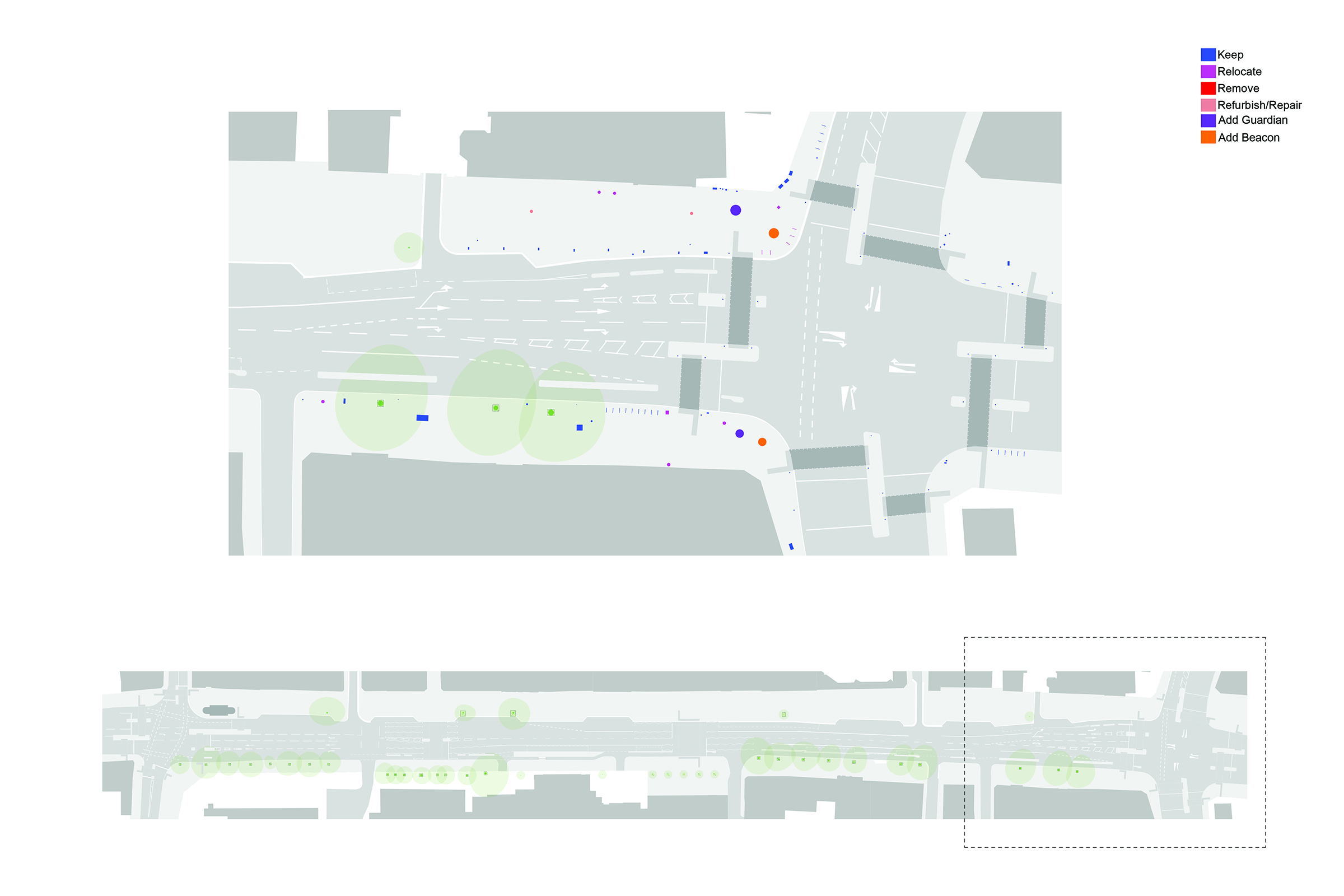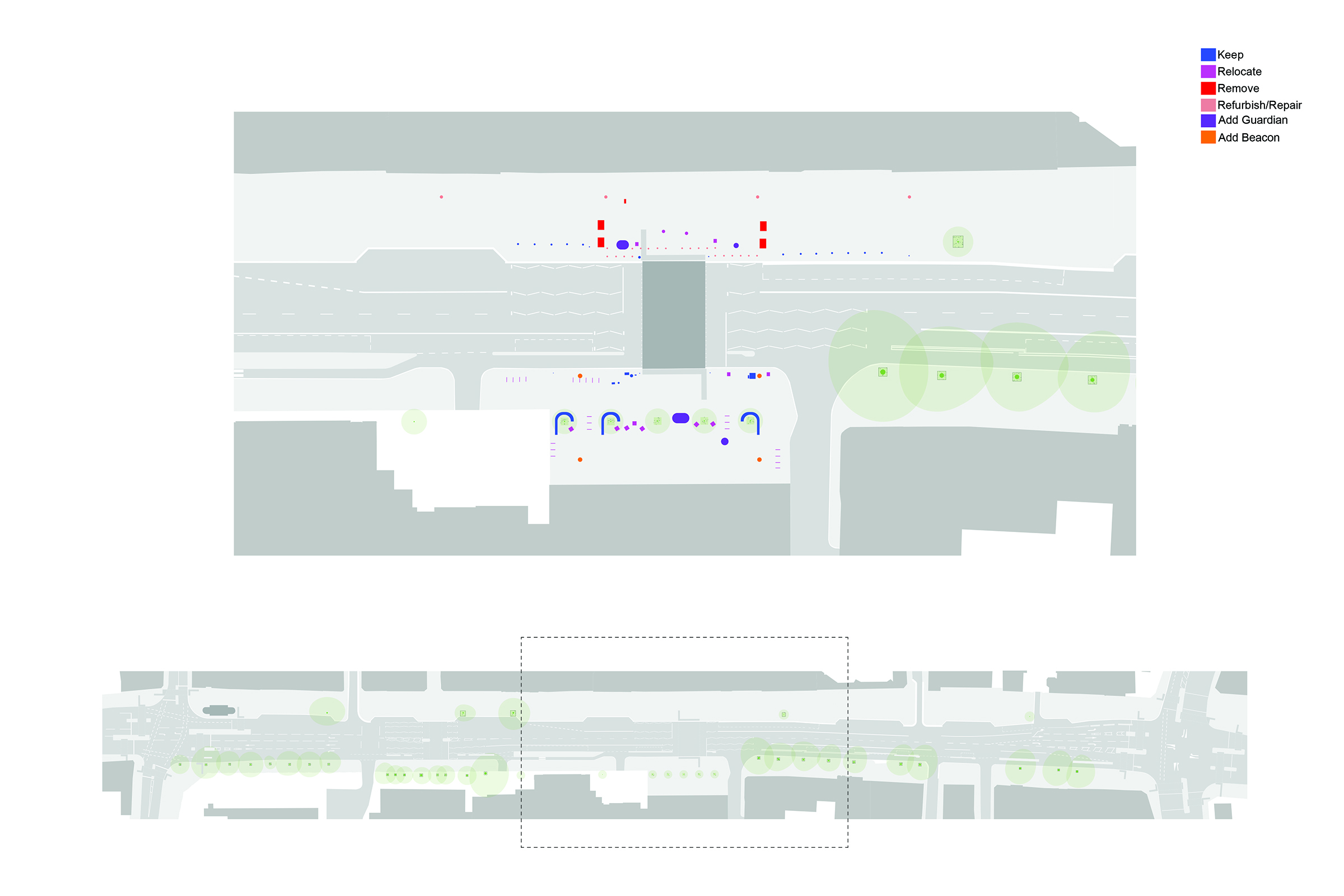1. STREET DE-CLUTTERING, our first layer focuses on clarity, dignity and space by removing unnecessary obstacles, reorganising existing structures, repainting and refining edges.