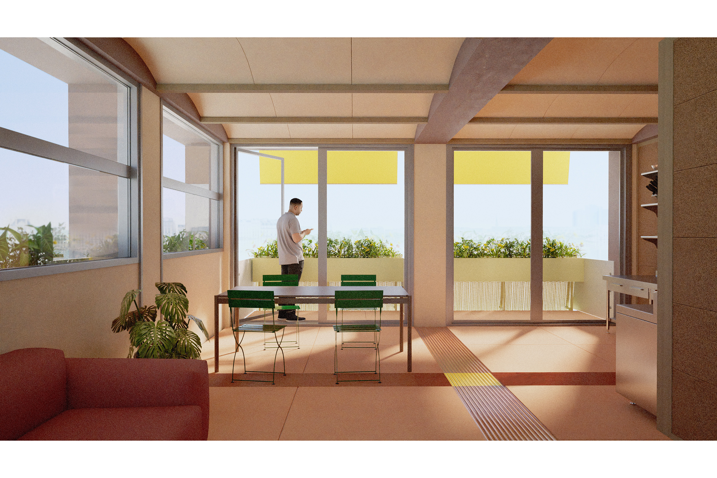 SOCIAL HOUSING for barcelona aims to foster inclusive, low-impact forms of cohabitation whilst transforming an underused piece of city, into a public space for all and 63 flats for the community. This is achieved through a generous civic square on the ground floor, as well as a hybrid system of modular prefabricated elements and on-site construction for the housing units above.