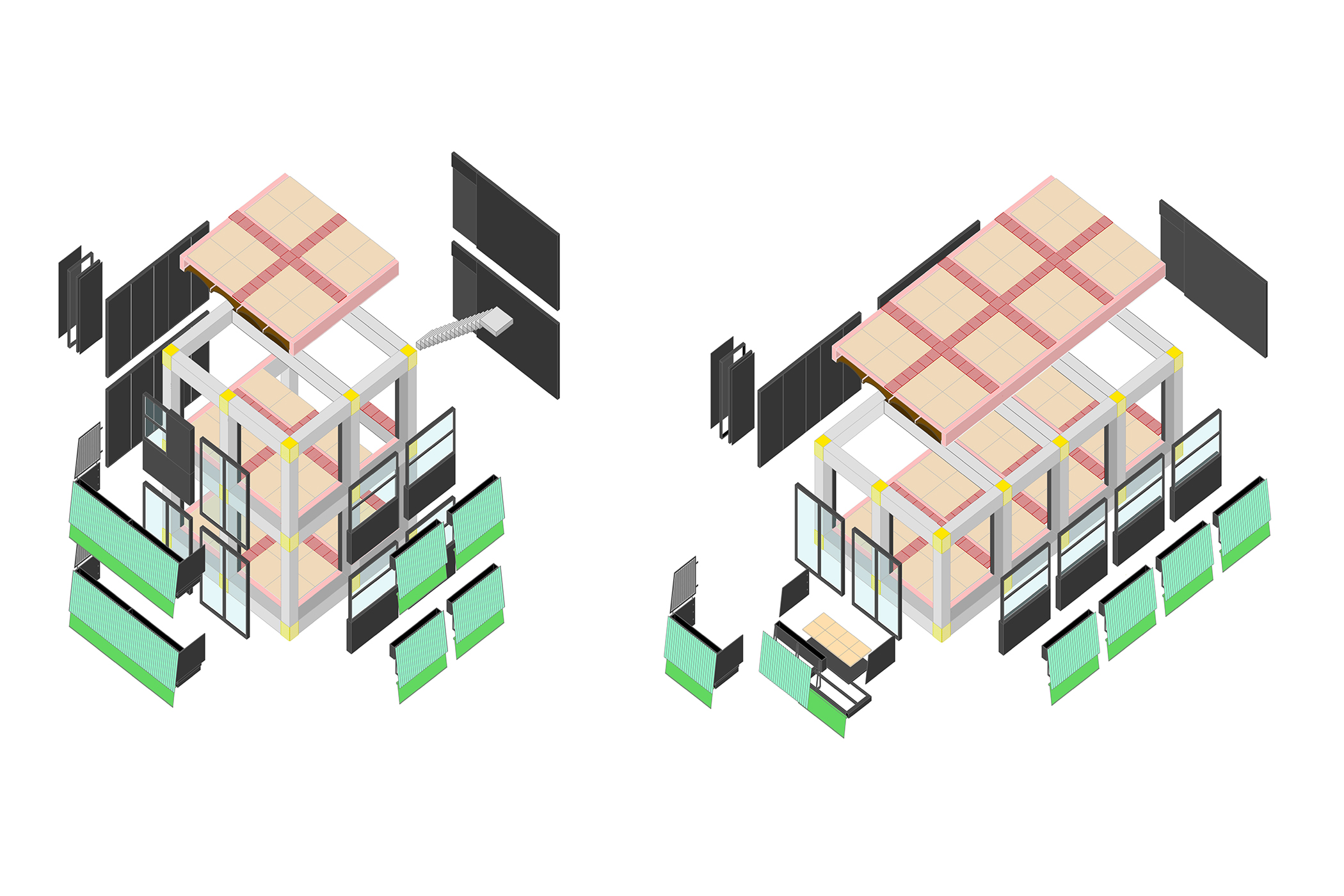 We have developed two adaptable typologies that inhabit an externally expressive 3m grid.